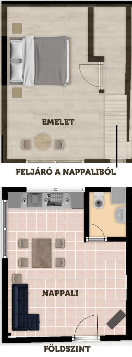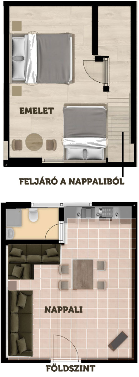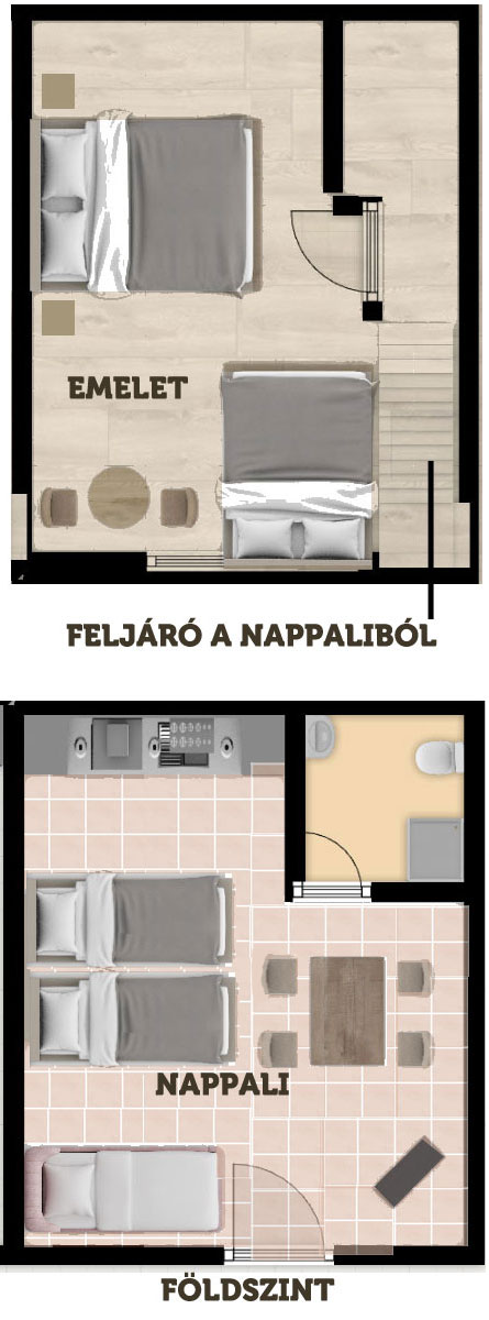 Ágytípus: 1 franciaágy az emeleten + 1 franciaágy a földszinten